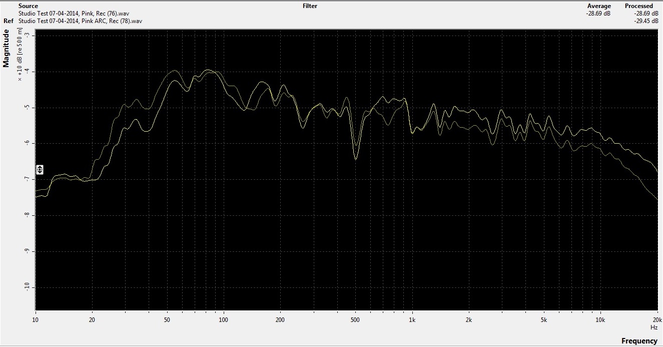 The "heavier" line is the ARC corrected recording, lighter line is the ARCless recording.